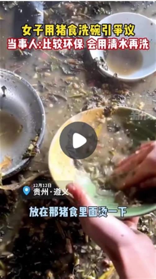 12月12日,贵州遵义,女子用猪食充当洗洁精洗碗引发争议。当事人任女士称,自己是农村人,老一辈人洗碗会先把碗放在猪食里烫一下再用清水洗,自己挺支持的,并不觉得这样做不卫生,反而觉得没有添加剂很环保,自己偶尔会这样洗碗,比较方便。(据12月13日大象新闻)