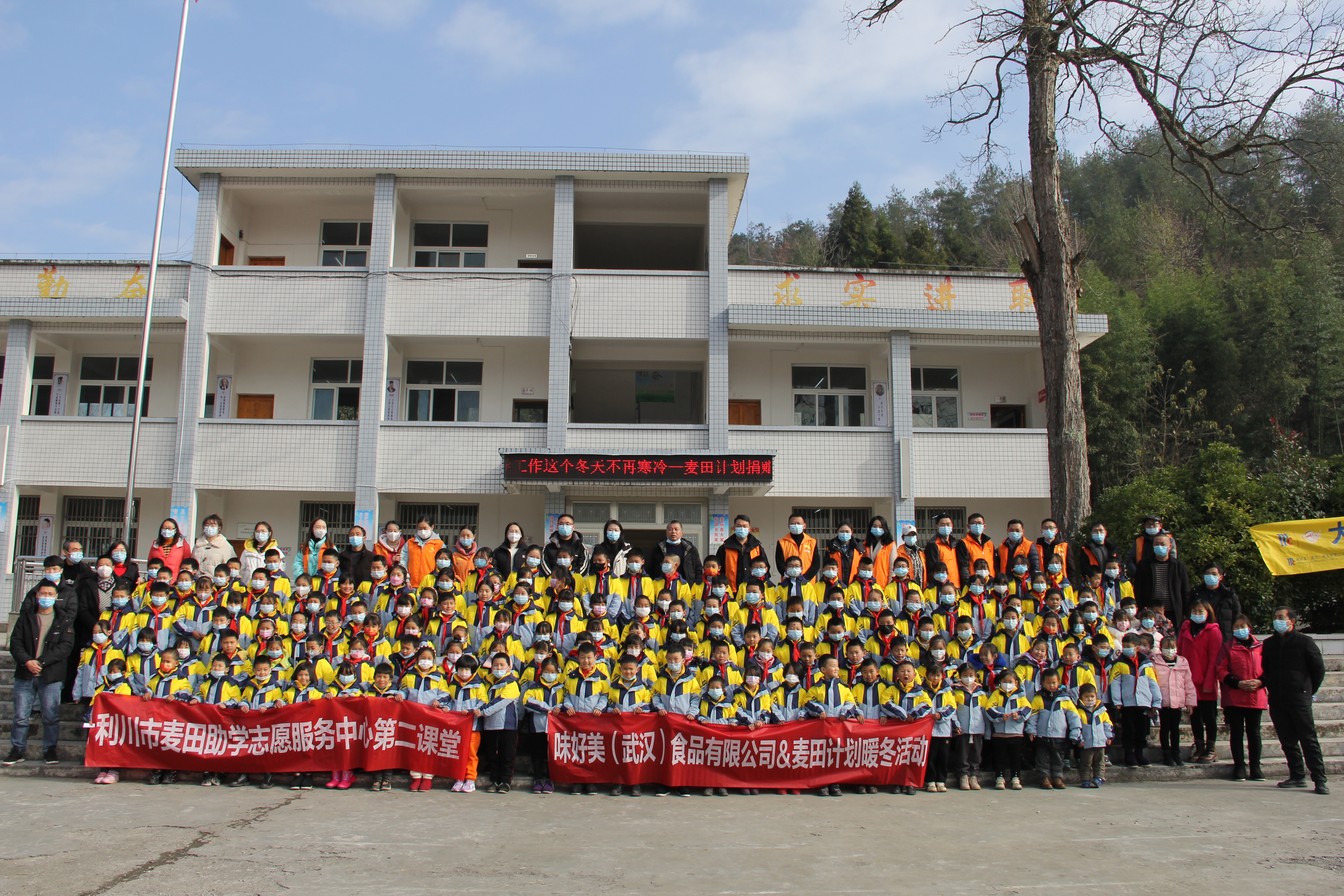 湖北日报客户端讯(通讯员席锈元)12月12日,利川市汪营镇白羊咀小学,143名学生收到了一份来自味好美(武汉)食品有限公司的冬日“惊喜”,每人一套冲锋衣三件套、一件保暖内衣、一双棉鞋。