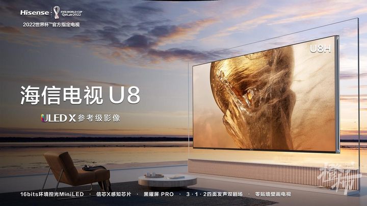 原来,作为世界杯官方指定电视,海信U8H采用全新的16bits环境控光技术,配合环境光感智能,可以精准感知用户所在观看环境的变化,不管夜晚还是白天,让球迷在任何家庭光线环境下,都能拥有舒适,沉浸的观赛体验。