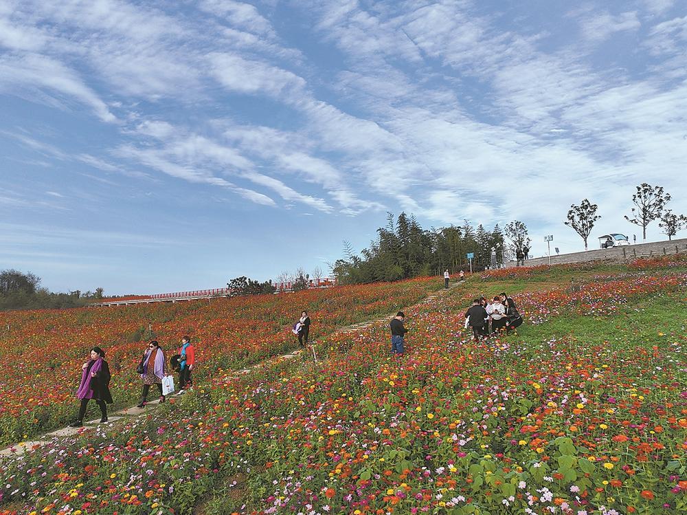 入冬以来,老河口市登云湖景区的波斯菊陆续开放,吸引众多游客前来观赏。