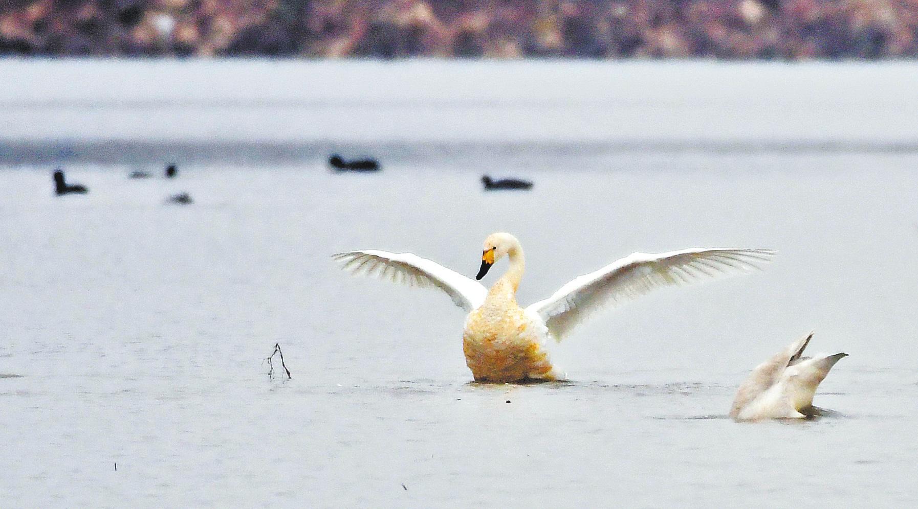 越冬的小天鹅。