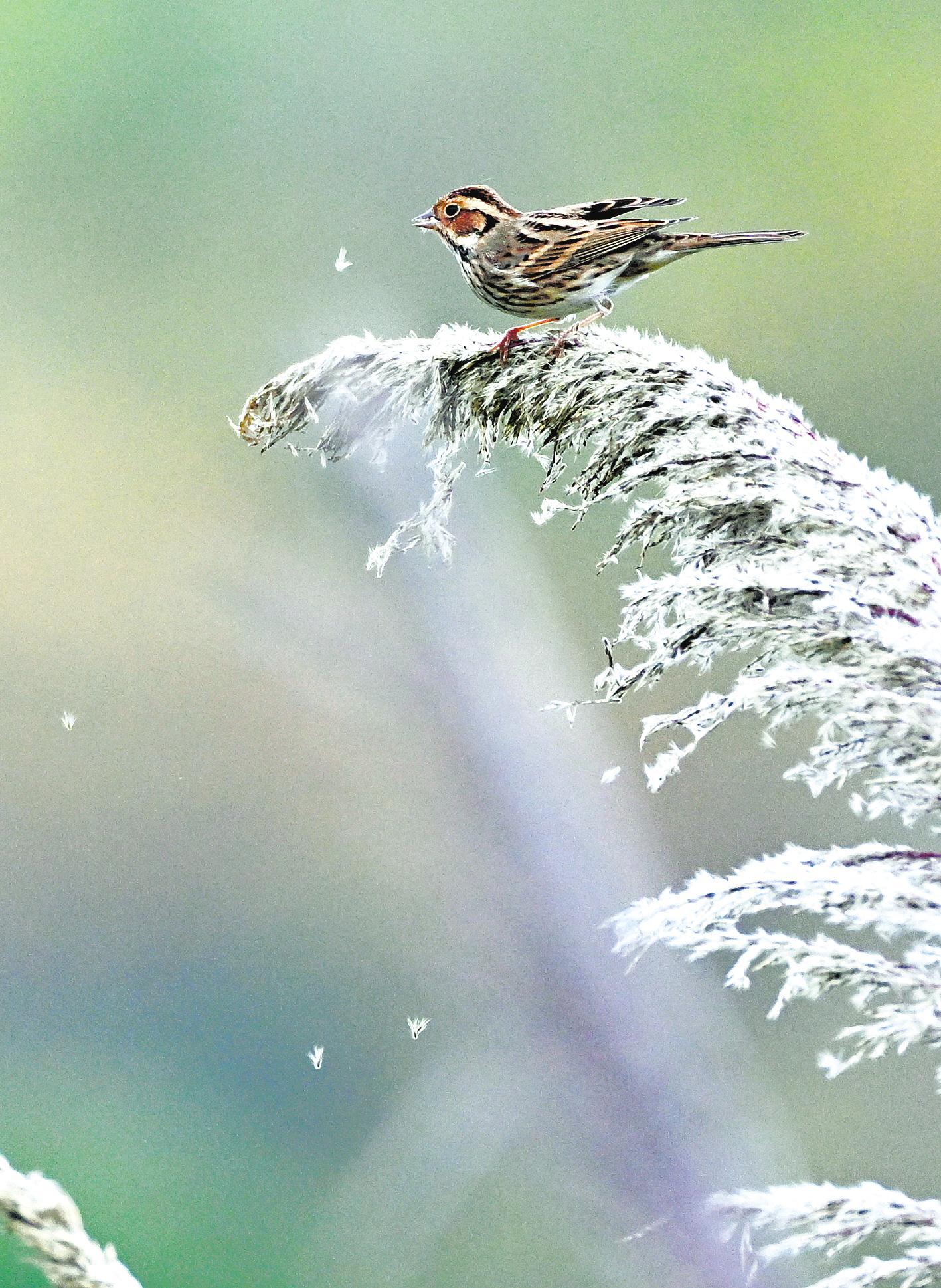 湿地芦苇中嬉戏的鸟儿。