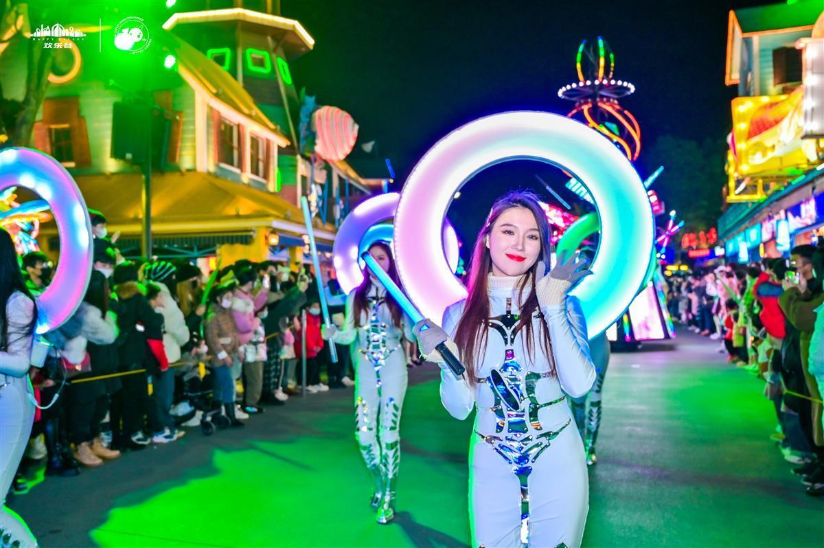 据悉,2022年12月24日-2023年2月19日,欢乐谷LIGHTS游乐园每周五至周日及节假日开启夜场,1月20日、21日、28日、29日不开夜场,运营时间为9:30-22:00。
