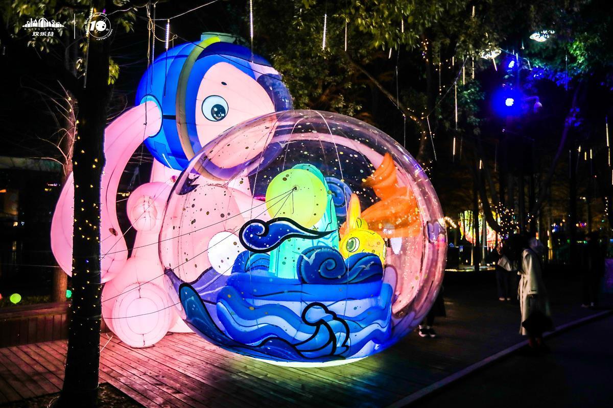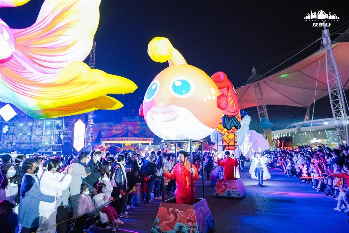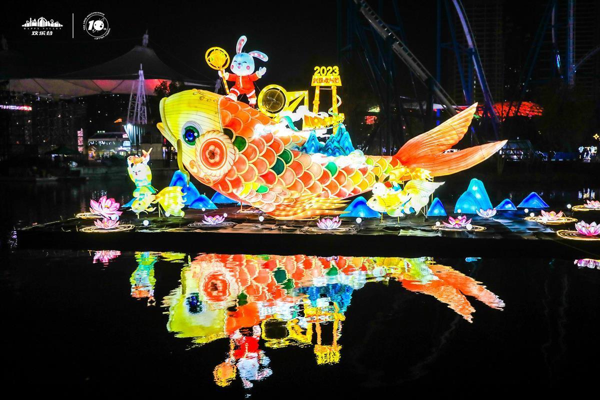 园区三大光影主题区汇成35万方幻梦灯海,“荧光海洋”主题区主打海底奇幻世界,“神隐花园”主题区风格俏皮童趣,描绘出童话中的发光神奇动物,“鱼国奇境”主题区引进上百组新国潮鱼灯,让游客在大鱼锦鲤的世界中畅快遨游。欢乐谷灯光节负责人表示,“本次灯光节回归传统,选择中国文化民俗的传统符号‘鱼’作为2023年灯光节IP,表达了国人对美好如意、年年有余生活的向往。后续‘会飞的鱼’、徽州嬉鱼表演等也将陆续在跨年、新春与大家见面,为江湖武汉送上温暖欢乐的锦鲤之光。”