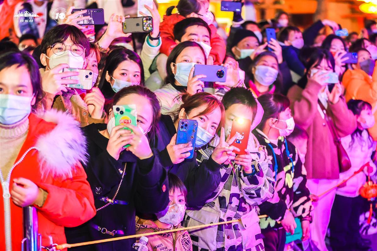 家住欢乐谷周边的许先生说:“年初赏灯转锦鲤,这次灯光节风景美,演艺热闹,寓意也好。”本次灯光节以“2023YU上光”为主题,意在给江城市民带来一场温暖美好的新年光之盛宴。