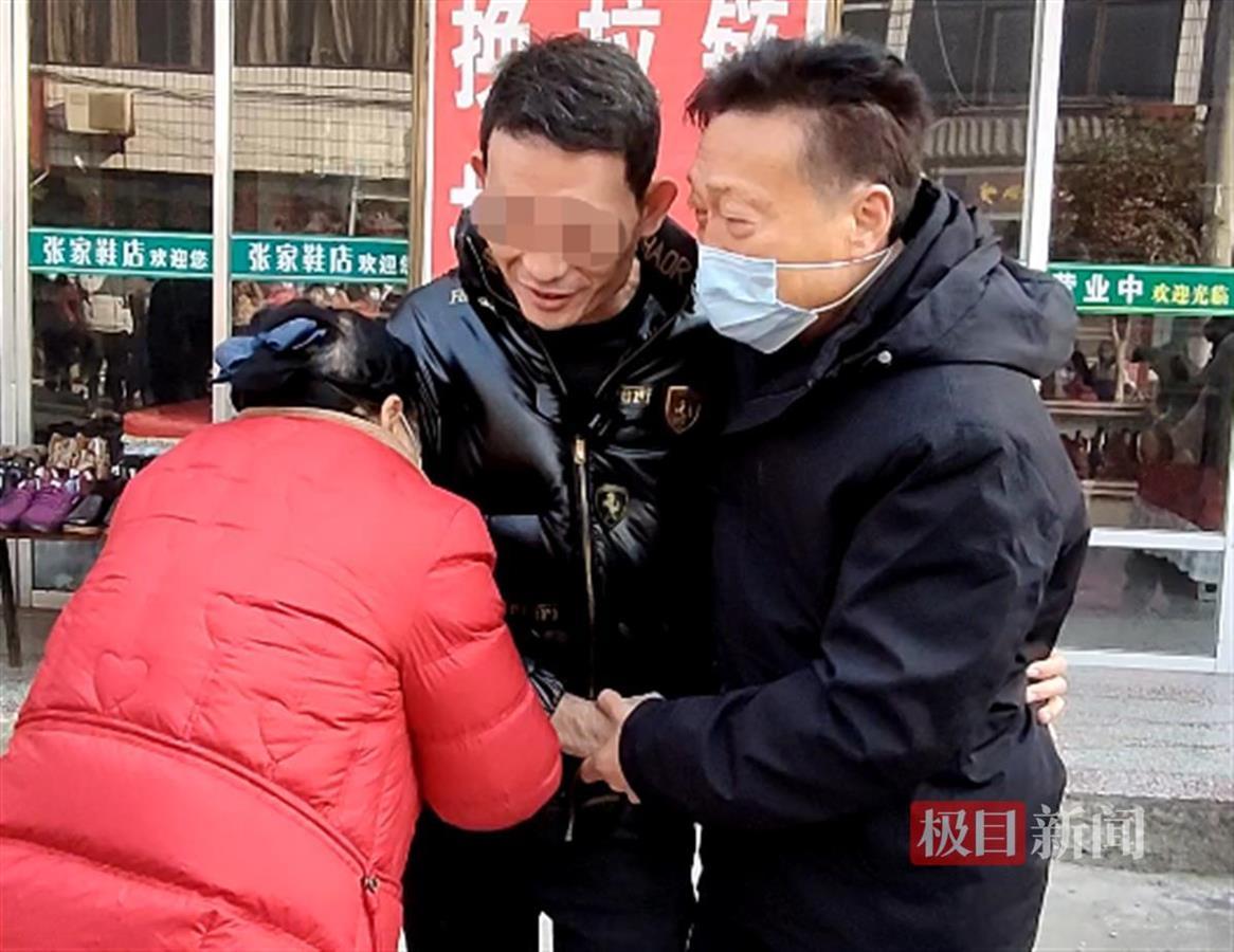 穿着大红棉袄的陈向华和丈夫周大国奔出家门,一左一右拉住孙某:“你可回来了啊!”陈向华抱着儿子的胳膊泣不成声。