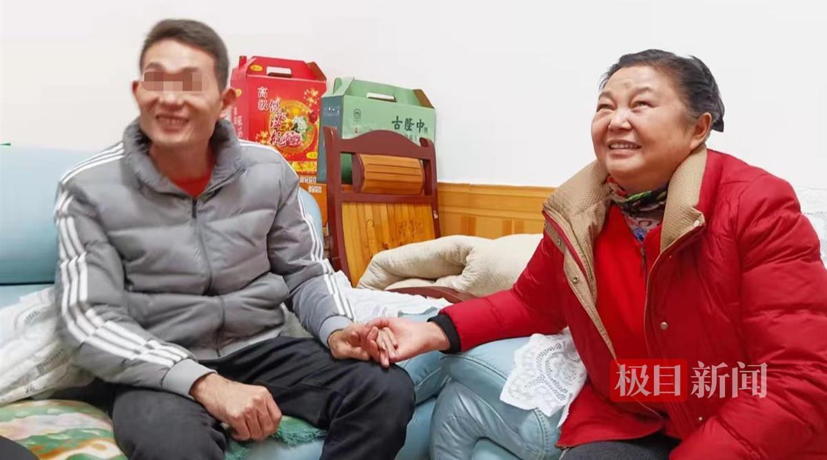 母子俩拉着手满脸喜悦(极目新闻记者周萍英摄)