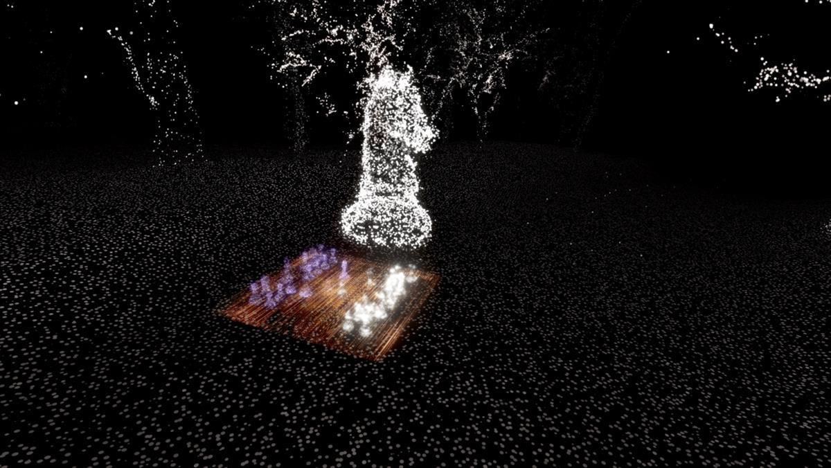 沈京京介绍,基于当今人们对技术发展的日益增长的需求的研究,《奇点》作为一个沉浸式虚拟现实体验,旨在把以加速度到来的科技奇点场景进行视觉化。此作品曾荣获亚洲数字艺术大奖。