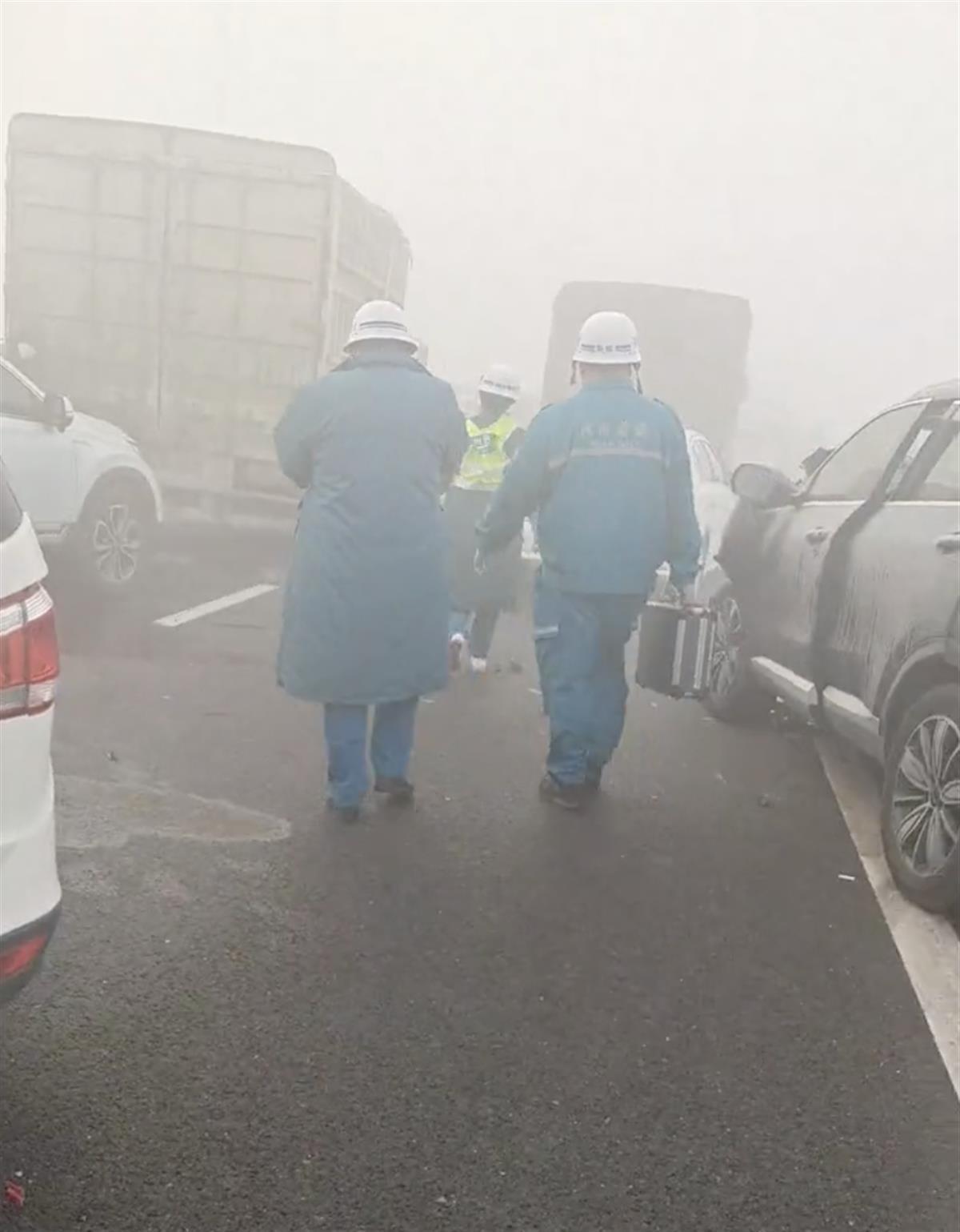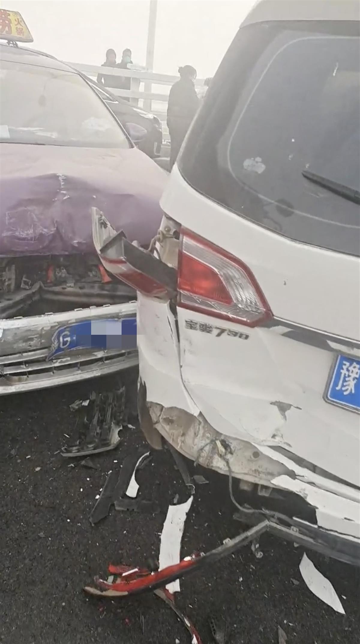 “一路上大雾时断时续,在经过大桥时,能见度特别低,只能看到前方几米,桥面也结冰了,刹不住车。我们车子右后侧被追尾,后面一辆接一辆车撞了上来。”28日下午3时40分,郭女士告诉极目新闻记者,被堵的车辆还有几百米,有救援人员正在清理现场,大雾已经散去。