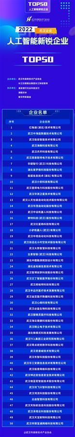 湖北日报讯(记者张倩倩、通讯员张寻)12月28日,2022年度武汉市人工智能新锐企业TOP50报告发布会在武汉经开区举办,武汉市高新技术产业协会发布TOP50企业名单,7家企业围绕人工智能发展趋势、人工智能赋能企业数字化升级、以及人工智能的应用及实践案例展开主题分享。