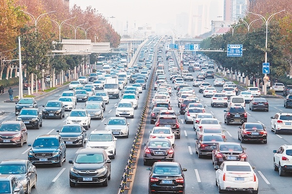 12月30日下午4时许,武汉市区长江二桥至竹叶山立交桥路段车流量大,但没有出现堵车现场,车辆有序通行。 (湖北日报全媒记者 朱熙勇 摄)