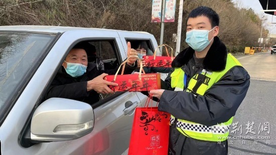 荆楚网(湖北日报网)讯(记者赵秀琳 通讯员秦卫萍)“今年提前回家过年,正好还没买春联呢。”12月31日,准备回河南老家过春节的舒先生父子,高兴地接过随岳高速收费员送上的新年大礼包。