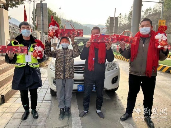 “疫情三年没回来了,还未到家就收到了礼物,真的很温暖。”随岳高速三阳收费站,一位从广东回来的司机接过“福”字礼包,不由得对收费员竖起了大拇指。