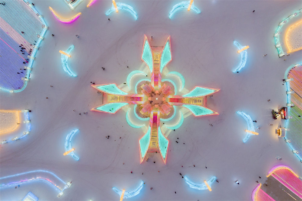 这是1月3日拍摄的第24届哈尔滨冰雪大世界园区(无人机照片)。新华社记者 谢剑飞 摄