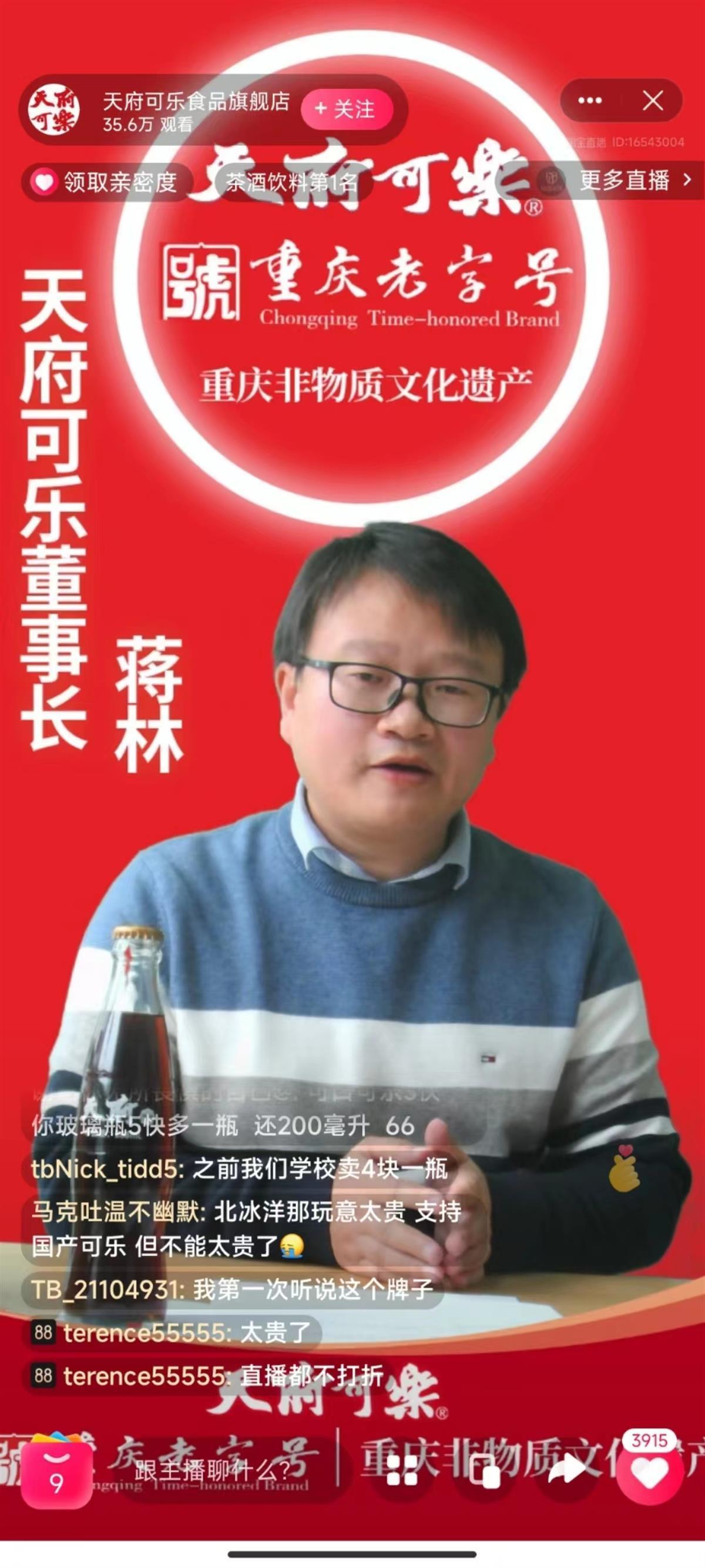 此外,该公司董事长蒋林也在5日上午11时到天府可乐的直播间开播,回应消费者关切。