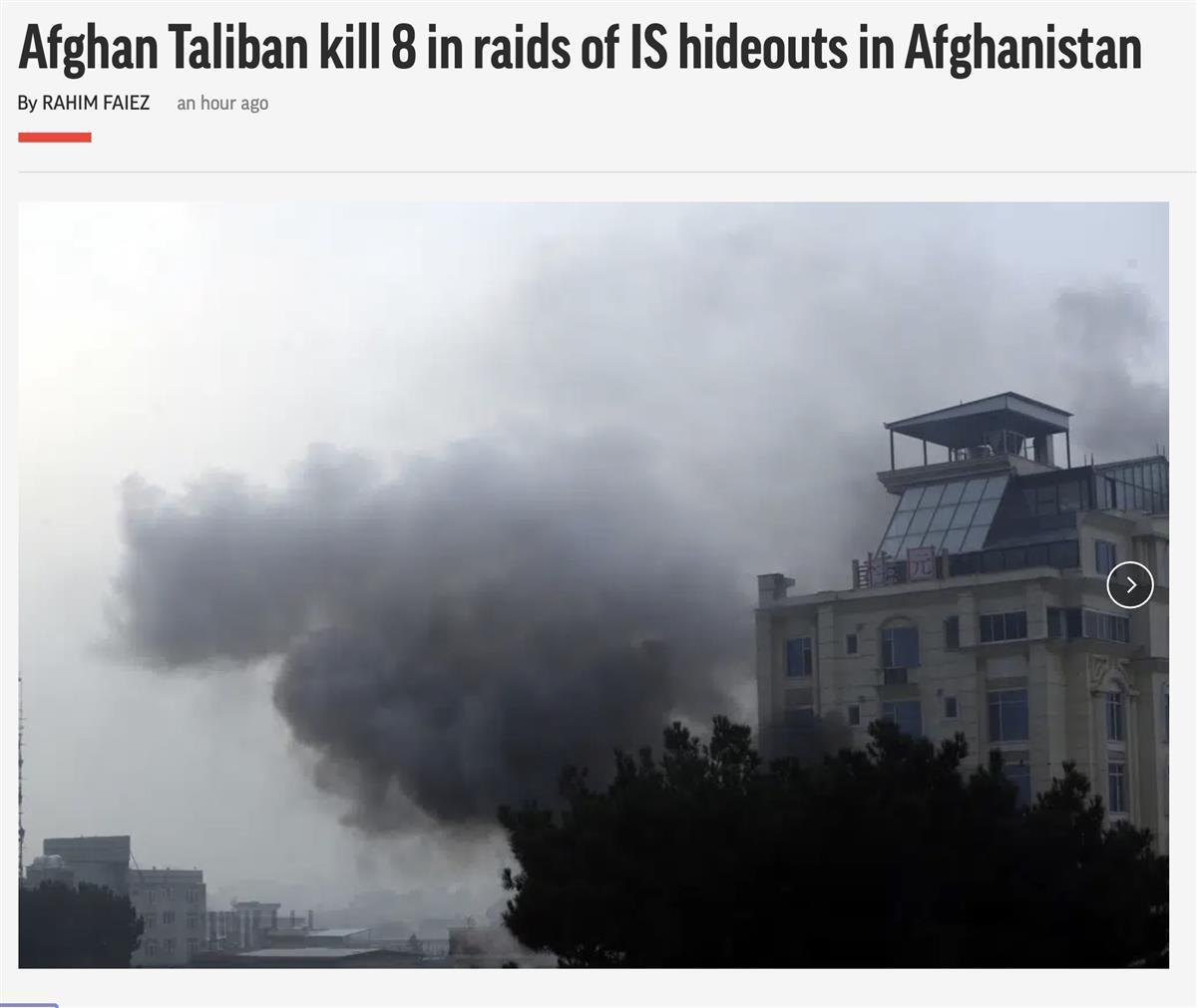 塔利班临时政府发言人扎比胡拉·穆贾希德表示,塔利班于4日在阿富汗首都和西部尼姆鲁兹省发动了系列袭击,针对的是最近组织袭击喀布尔桂圆酒店、巴基斯坦大使馆和军用机场的伊斯兰国武装分子。