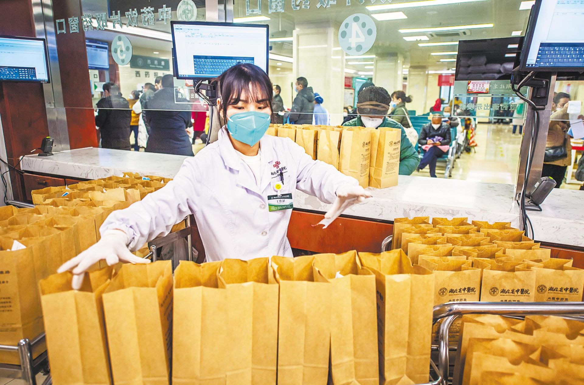 1月5日,湖北省中医院花园山院区的门诊中药房里,10多名药师忙着收药、调配、核对、包装、发药……为患者调配“防治结合方”。“防治结合方”是由该院牵头起草的《2022年湖北省新冠肺炎中医药防治方案(试行)》中针对隔离人群的推荐方,目前,全省已使用超过300万剂次。