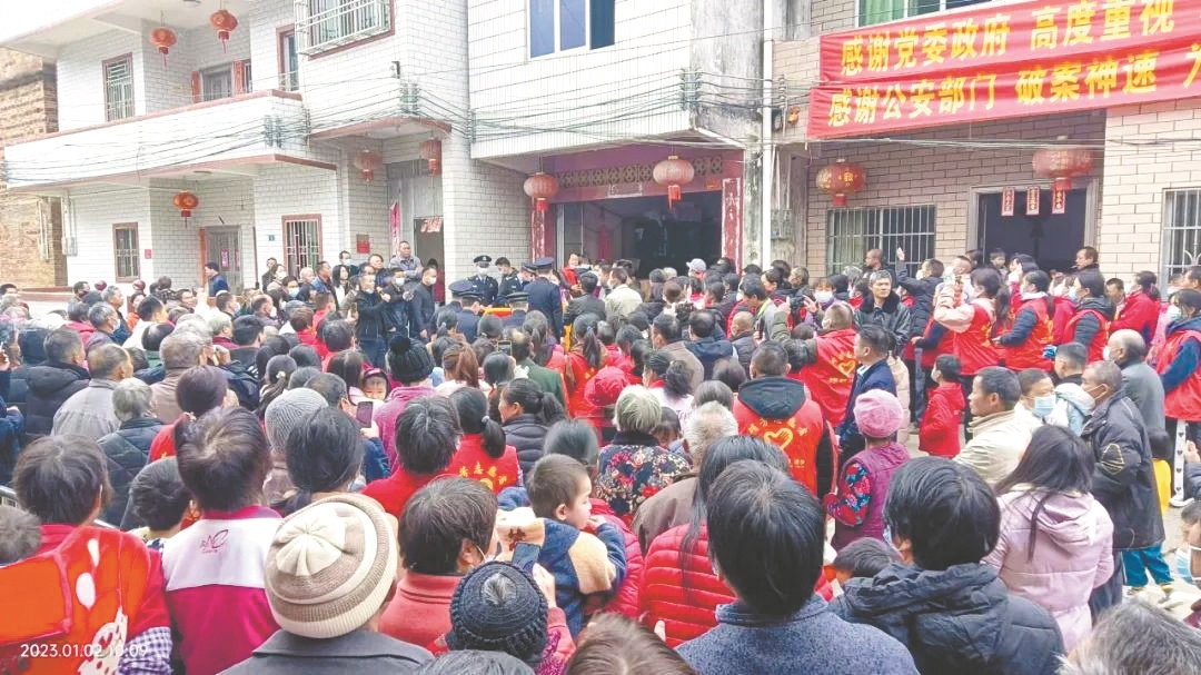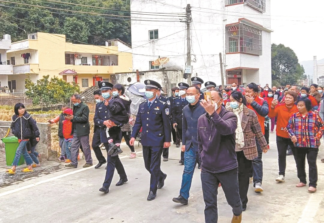 1月2日上午10时许,五华民警如约带着小欢欢出现在云溪村口,村里数百名村民自发到村口迎接,还有人高兴地放起鞭炮。