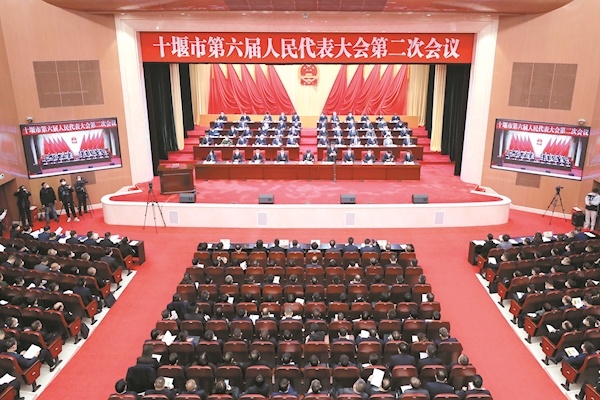 十堰市第六届人民代表大会第二次会议开幕式现场 摄影:楚天都市报极目新闻通讯员张建波