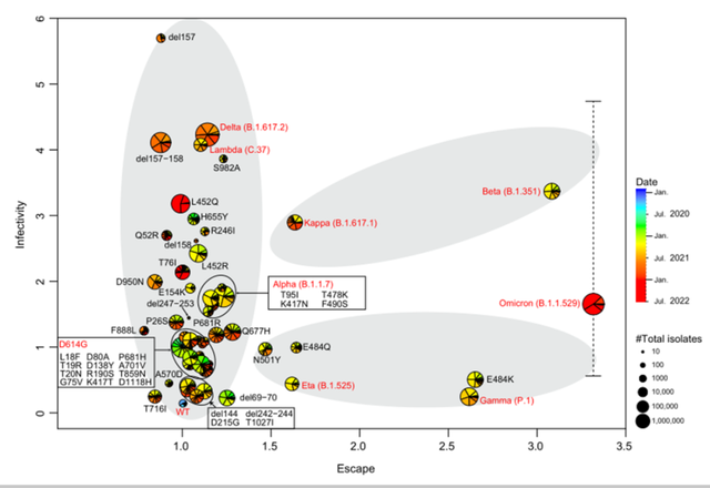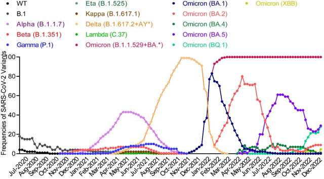 图1.截至2022年12月SARS-CoV-2突变株出现的频率
