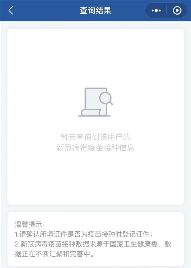 记者在国务院小程序上未能查询到接种信息(小程序截图)