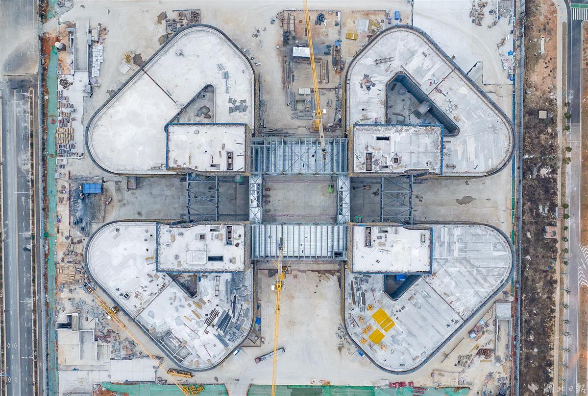 1月8日,航拍路特斯全球总部智造中心项目。近日,位于武汉经开区军山新城的路特斯全球总部智造中心项目主体结构顺利完成封顶。该中心是承接路特斯科技全球总部研发、运营、管理职能的主要办公载体,可供4000人以上团队协同办公。项目建成后,将成为路特斯智能纯电动生活用车的供应链管理、全球营销及研发设计中心,填补武汉超高端汽车市场的空白,进一步促进更多汉产路特斯高端智能纯电车销往全球。(湖北日报全媒记者柯皓通讯员李岿摄)