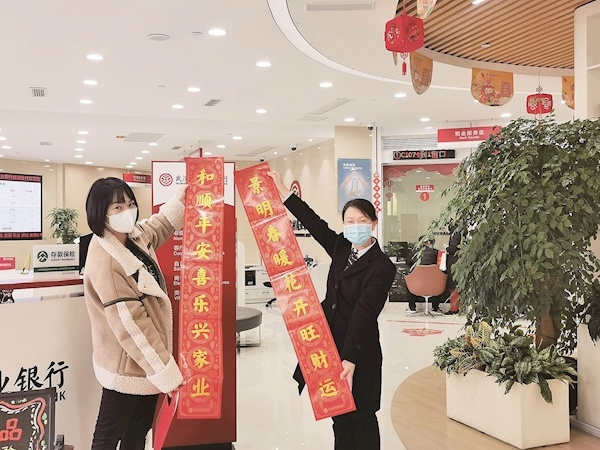 走进银行网点,即使是每天忙碌得“不知今夕是何夕”,也可以立刻感觉到新春气息扑面而来。