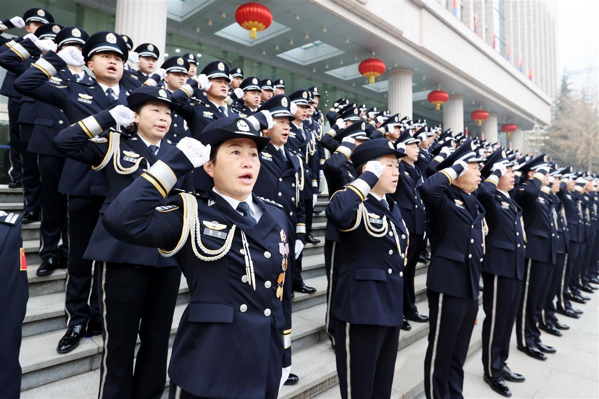 随后,武汉市公安局督察支队政委陈端敏举起右拳领誓,全体民警高举右拳重温《公安机关人民警察誓词》,誓言铿锵,精神昂扬。