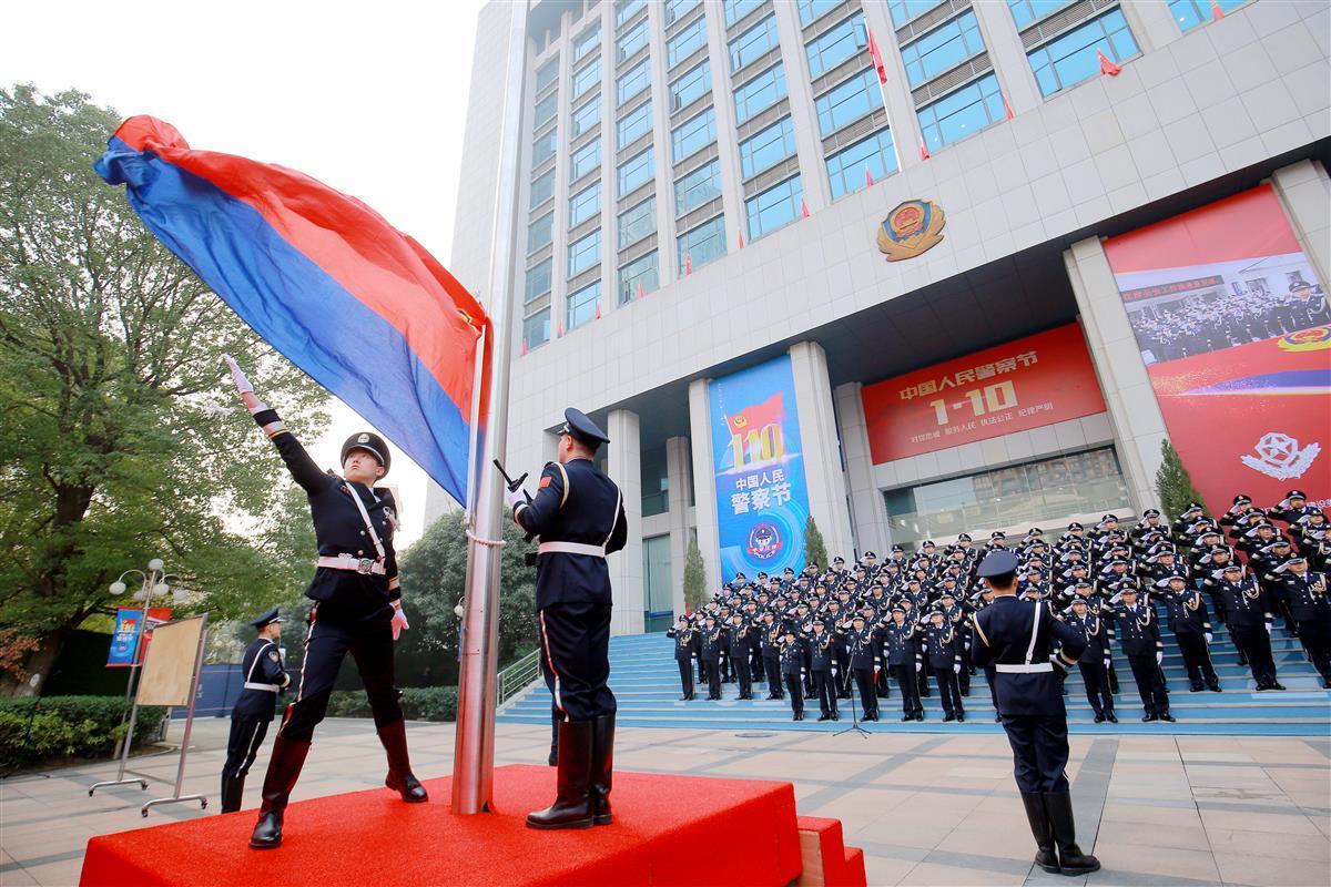 (新媒体)武汉公安举行升旗仪式 庆祝中国人民警察节