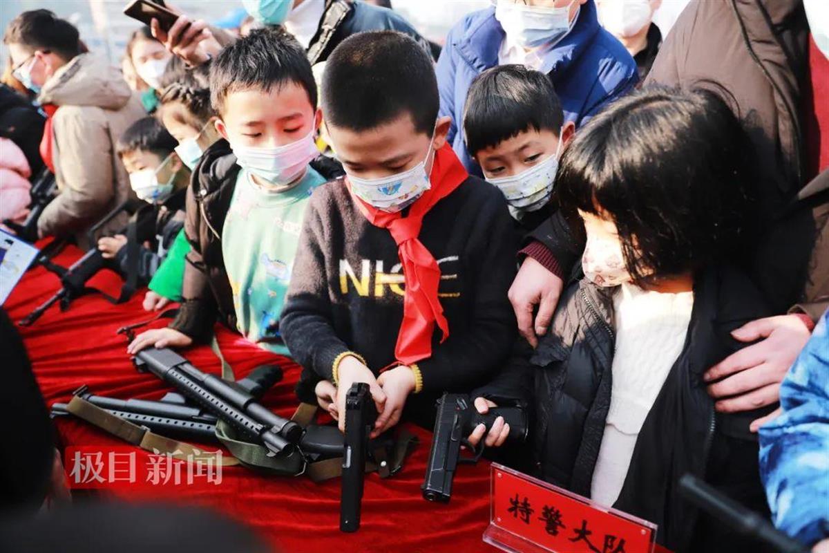 10日下午3时,恩施市局指挥中心、刑侦、治安、禁毒、网安、行政审批、交警、特警以及派出所等警种,齐聚恩施州工人文化宫广场,“剑齿虎”特种防暴车、特警骑警和交警快骑巡逻摩托车、警用武器装备悉数亮相,小朋友们争相体验、合影。各单位还结合警种特点,摆放展板、发放宣传手册、发起有奖知识问答,开展普法宣传。一小学生家长表示,萌娃们在参观、互动、聆听中零距离感受警营文化,体验警营生活,活动圆了孩子们小小的警察梦。