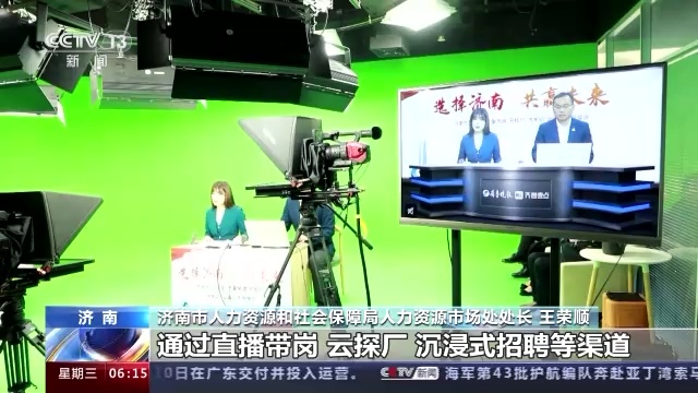 济南市人力资源和社会保障局人力资源市场处处长 王荣顺:通过“直播带岗”、云探厂、沉浸式招聘等渠道,组织开展重点企业用工“春风行动”等专场招聘活动,为有用工需求的企业提供定向就业服务和稳岗政策支持。