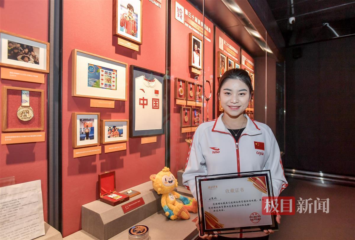 维尼修斯的主色调为黄色,代表了巴西的动物,有猫的灵性,猴子的敏捷以及鸟儿的优雅。刘蕙瑕告诉记者,那是她在赛会期间买的,并且也是她比较喜欢的大赛吉祥物之一。不过为了湖北博物馆的展陈更为丰富,她将其捐赠了出来。“我是湖北培养出来的,在这个平台上完成了自己的奥运冠军梦。现在我在湖北体育局游跳中心工作,有这个义务为博物馆做一些力所能及的工作。”