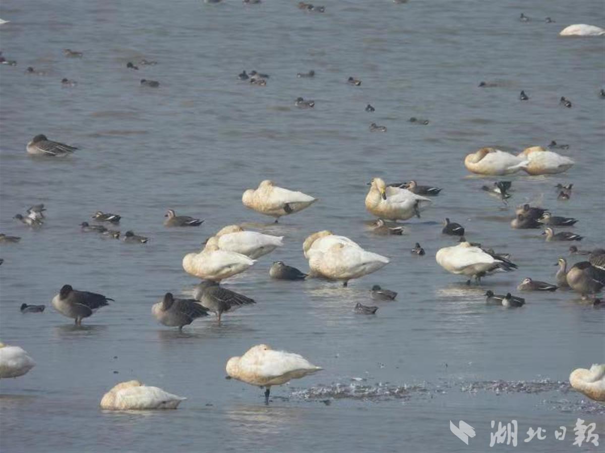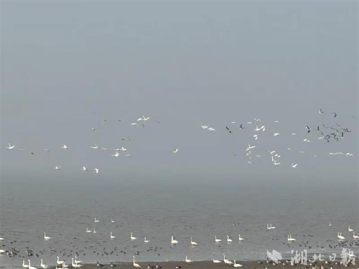 踏进沉湖湿地,滩涂上、水岸边、天空中,分布着数以万计的精灵,它们或空中翱翔,或展翅欲飞,或水中觅食,或站立小憩,姿态各异。斑嘴鸭、小天鹅、翘鼻麻鸭、小白额雁、灰雁、白鹭、赤麻鸭、反嘴鹬密密麻麻,铺天盖地,还有纯色山鹪莺、红头长尾山雀、戴胜、白尾鹞等惊鸿一瞥。老师们的惊奇声盖过了快门声。