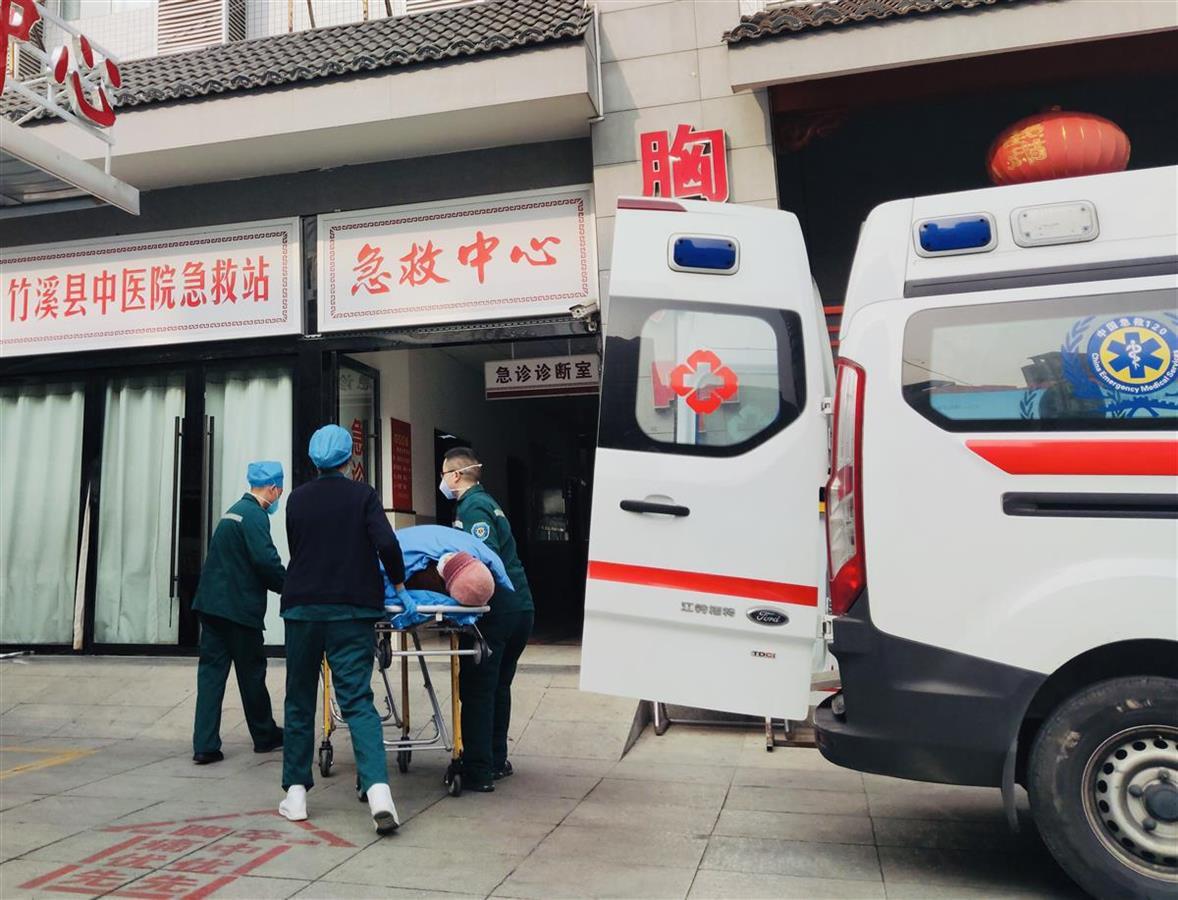 竹溪县120转运收治龙坝镇老年感染患者(柯锐摄)
