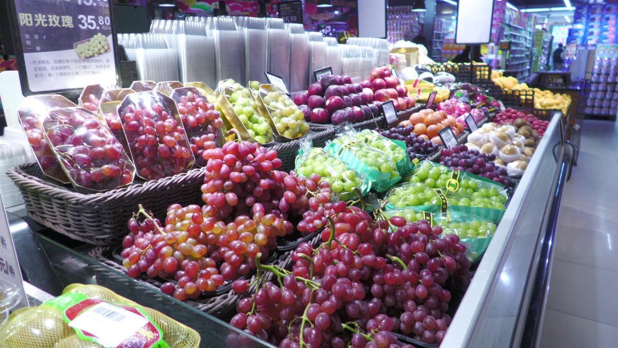 在南漳县大润发超市,各种货物商品一应俱全,瓜果蔬菜质地新鲜,生鲜肉制品摆放有序,大米、面粉、食用油还推出节日活动价。超市人气最旺的是蔬果区,品种多样、门类齐全的新鲜瓜果,塞满了消费者的购物车。