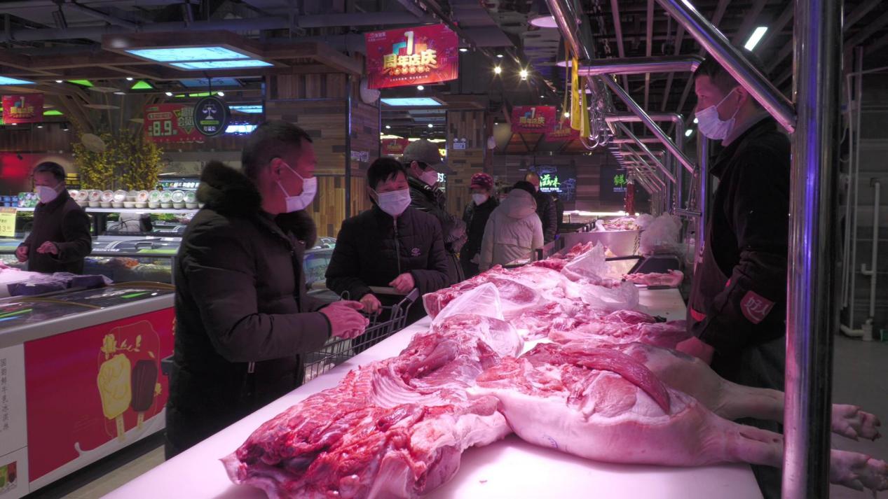 在南漳县雅斯超市,大红灯笼、“福”字等喜气洋洋的新年装饰品随处可见,年味十足。货架上,琳琅满目的商品,各类蔬菜、水果摆放有序,肉、蛋、奶制品、米、面、食用油等生活必需品供应充足。