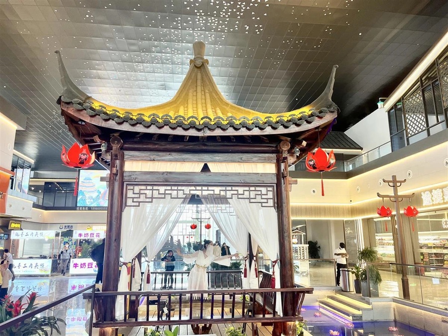 据了解,升级改造后的沪渝高速潜江服务区占地约7000平方米,基于“交通+旅游+文化”设计理念,以《尔雅·释水》中潜江市名之由来为脉络,借助由东到西一脉相承的人工水系将综合服务区、文化演绎区、花海游乐区和主题酒店区串联起来,打造现实版的“汉出为潜”。该服务区以“戏韵龙城”为主题,已正式升级成为湖北高速最大商业综合体。
