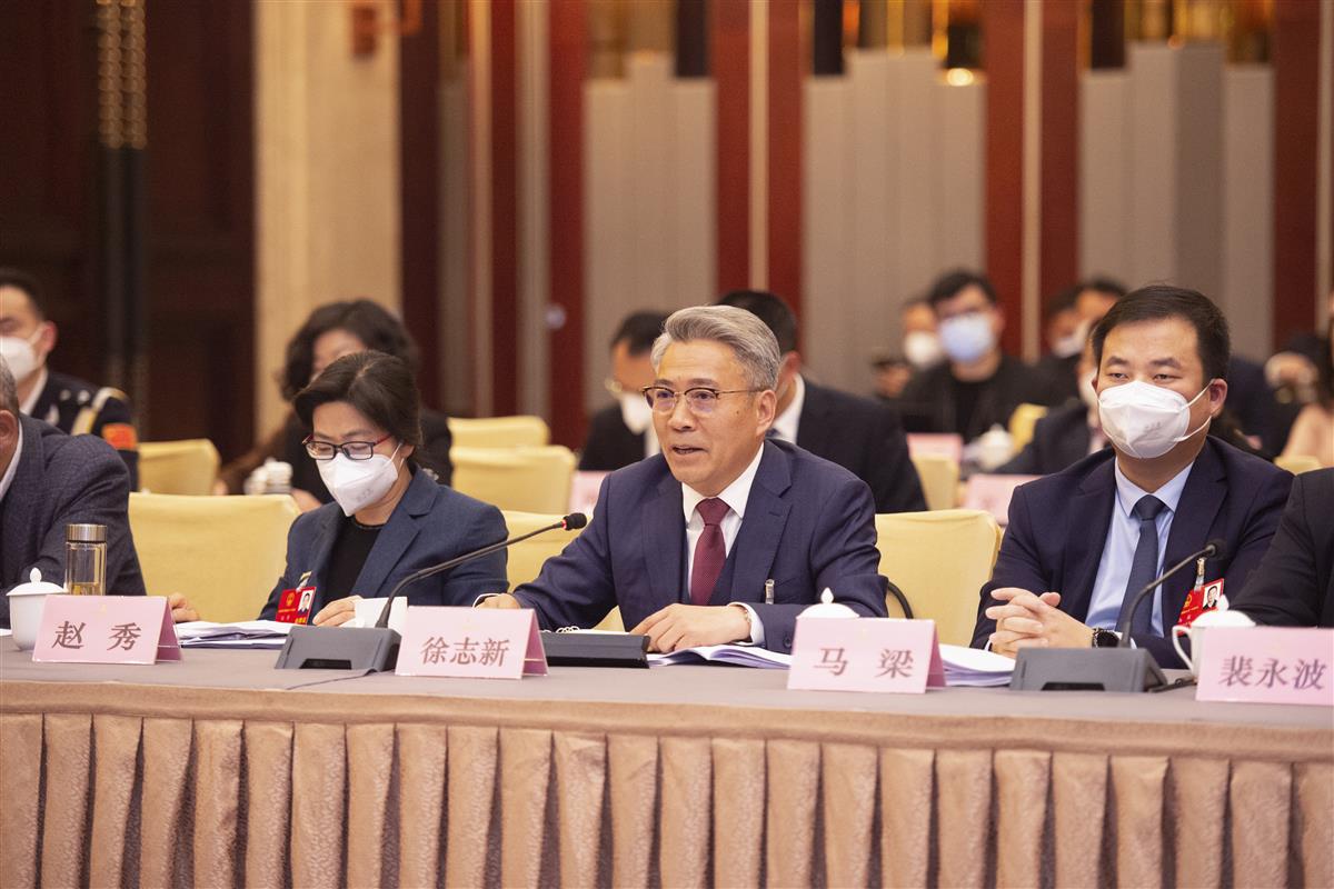1月13日,黄冈市代表团审议政府工作报告,省人大代表徐志新(中)发言。