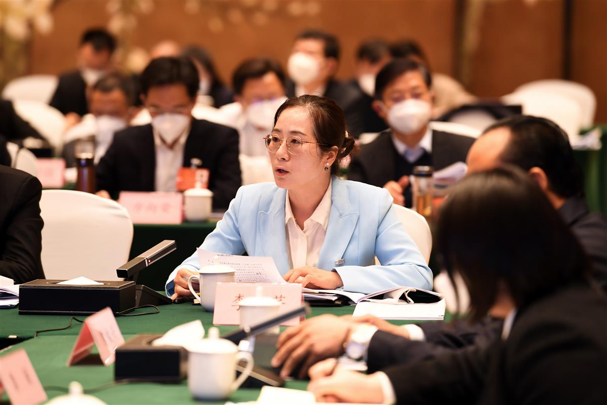 1月13日下午,荆门市代表团审议政府工作报告,省人大代表李芹(中)发言。
