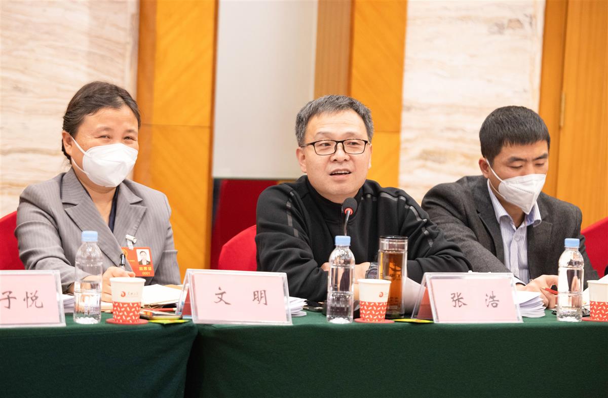 1月13日,鄂州市代表团审议政府工作报告,省人大代表张浩(中)发言。