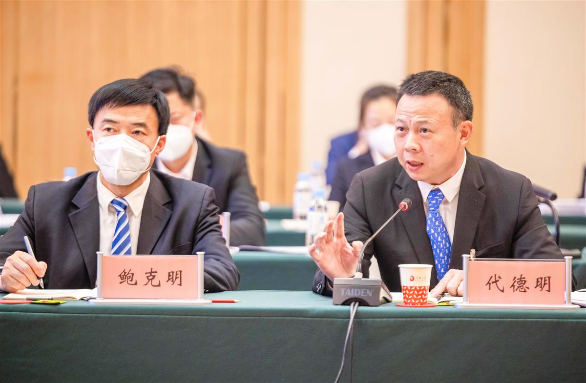 1月13日,孝感市代表团审议政府工作报告,省人大代表代德明(右)发言。