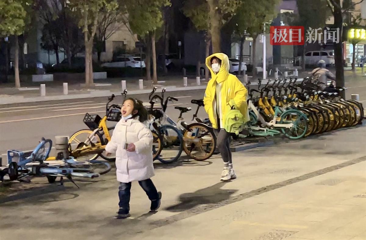 1月14日,小年当天晚上,江城武汉2023年的第一场雪如约而至。当晚8时许,极目新闻记者在武昌水果湖步行街旁看到,稀疏的雪花随风飘扬,一名小朋友边走边仰着头,张开小嘴吐着舌头想尝尝雪花的味道。