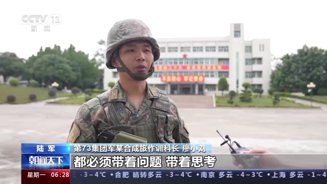 第73集团军某合成旅作训科长 廖小刘:推进实战化军事训练,核心就是提高部队战斗力。我们在每一次任务中,都必须带着问题、带着思考,通过不断地训练、考核、演习、复盘,强化指挥层级与作战末端的协同配合,有效提升我们合成部队的体系作战和聚合打击能力。