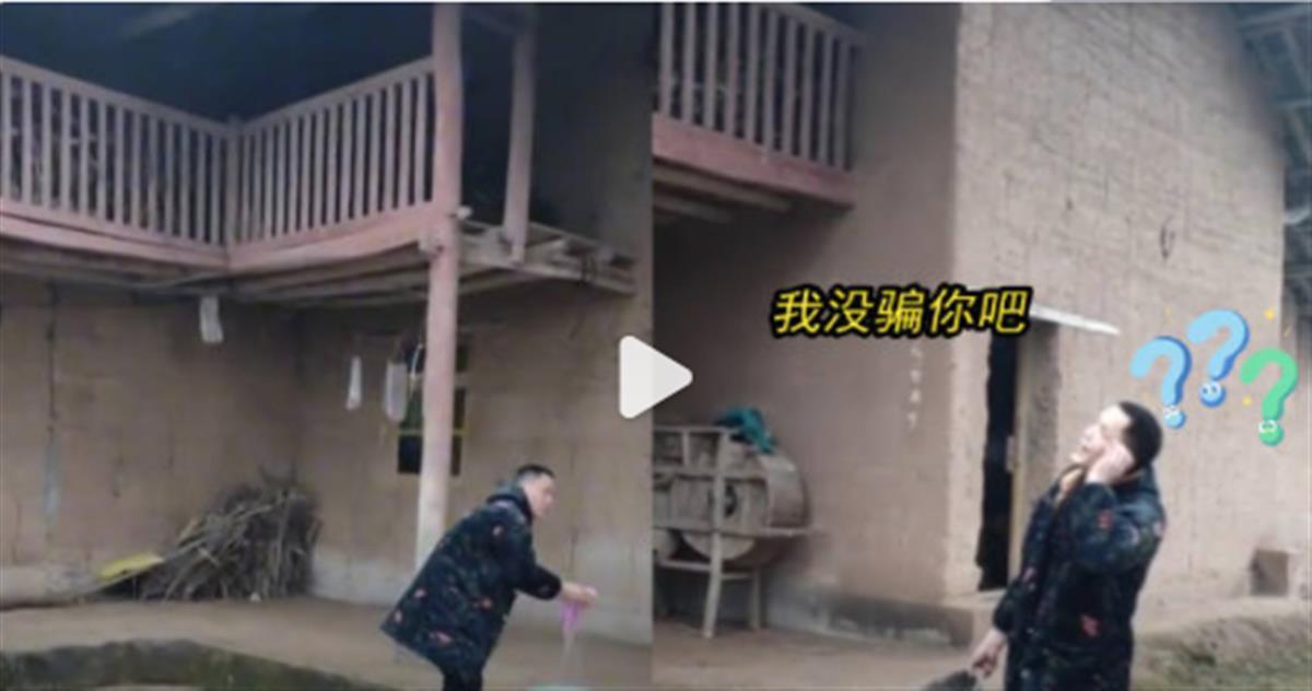 视频里的“别墅”,就是一栋两层的土房子,十分接地气。至于全天然绿化,说的大家都懂,就是野生野长的杂草。家里有“小车”,风车是不是车?这的确挺烧脑的。