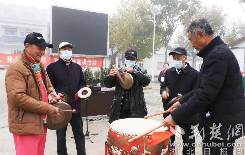 村村锣鼓响,处处歌声飘……在接官乡,清一色的草根文艺爱好者,他们利用快板、歌舞、湖北大鼓等形式将党的二十大精神送到每一个角落。
