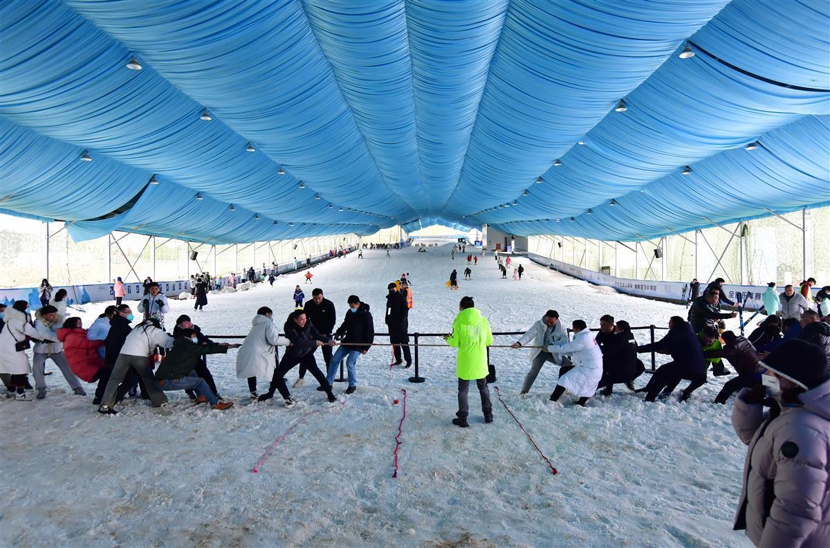 颁奖典礼结束后,武汉市、区两级体育部门和协会的工作者和各社会团体相关人员还举行了一场雪上趣味运动会,雪上拔河、雪上射门、滑雪体验……获得优秀团队奖的汉阳区游泳和水上运动协会负责人史正祥玩得一头大汗,他说:“我们协会每年都在忙着办各种比赛,平时很难得在一起交流,现在也有机会当一回比赛选手,感觉非常新鲜有趣,感谢组委会为各体育单项协会和社会团体提供了这样一个交流互动的平台。”
