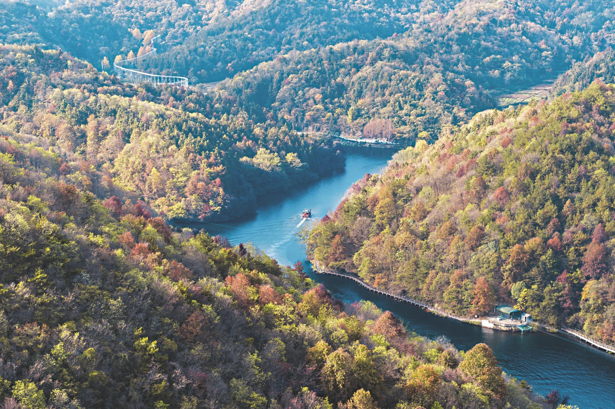 姚家山林场面积1.3万亩,周边双峰尖、门前山、茶山等山体相峙环绕,四季常绿。漫步香溪谷闻山野花香,踏上木栈道看瀑飞泉涌。走累了,就回到冬野露营地,参加一场星光篝火晚会,体验新年新时光。