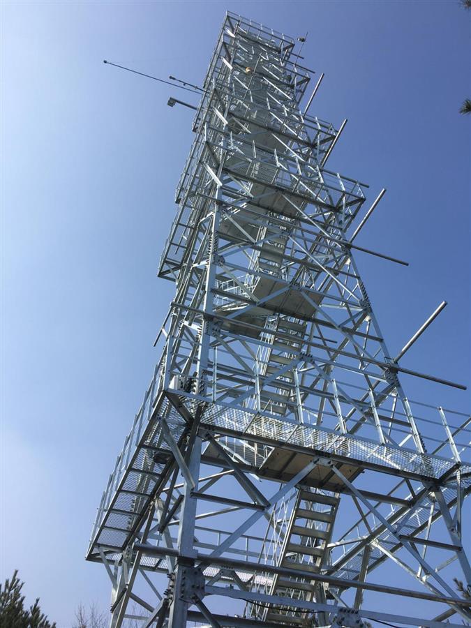 该台站位于薄刀峰管理站爵主庙,海拔1050米,占地面积300平方米,主要由铁塔、5个典型样地和相关配套设施构成。其中铁塔高35米,有5层平台,配备220V电源和千兆高速宽带网络服务。铁塔上配有开路式智能涡度协方差分析系统、植被荧光观测系统、红外表面温度观测系统、植物生长节律连续监测系统、二氧化碳浓度监测仪等多个先进观测仪器。