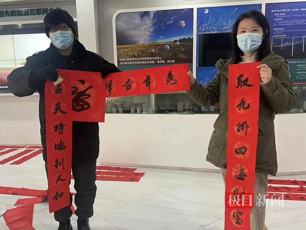 1月16日,国网武汉供电公司汉口客户服务中心二七供电服务站,邀请湖北省书法协会书法家到营业厅开展“写春联,迎新年”活动,将写好的春联赠送给前来办理业务的客户,为客户送上真挚的新春祝福。