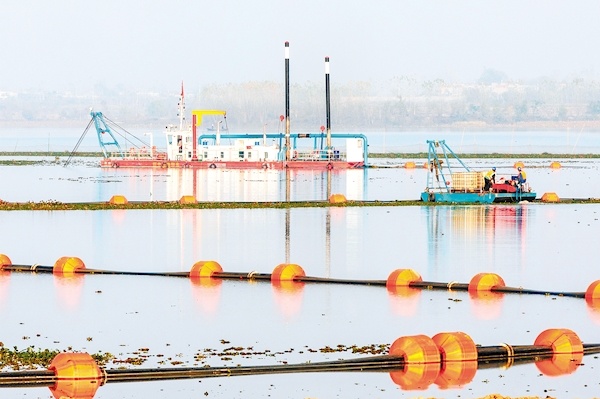 张家大湖生态修复工程施工现场。(通讯员 张俊 摄)